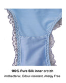 • Silk inner crotch: Absorbs and perspire moisture and provides the best feminine hygiene care
