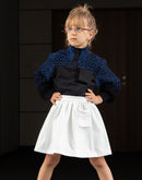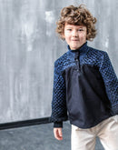 Avantgarde girl's and boys' shirt with knitwear elements. Sleeves, part of the collar, and front panel are made out of knitwear. Only 100% organic cotton is used for knitting by our partner atelier Eho Tricot.