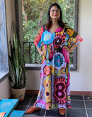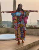 Our Caftans are very versatile in that you can wear them for lounge-wear, as a beach cover up, or you can even dress them up a bit with the proper shoes and jewelry to wear as a summer dress.
