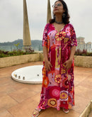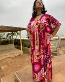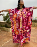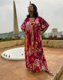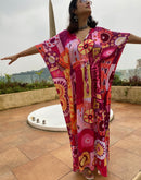 Our Caftans are very versatile in that you can wear them for lounge-wear, as a beach cover up, or you can even dress them up a bit with the proper shoes and jewelry to wear as a summer dress.