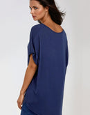 Featuring a trendy V-neckline and comfortable short sleeves, the Aftershock London Oversized T-Shirt in Navy is perfect for a laid-back yet chic look. Made from a soft viscose blend, it drapes beautifully on any figure, ensuring all-day comfort whether you’re out with friends or lounging at home. Versatile enough to pair with your favorite jeans or leggings, this t-shirt is a must-have staple for every wardrobe.