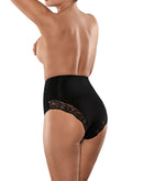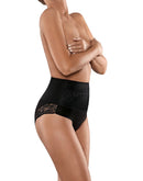 Higher waist shaping panties, emphasized with beautiful, delicate lace. If you are looking for underwear that will improve the shape of your belly and hips, slim and make them slimmer, and at the same time love soft fabrics and feminine charm, bet on this model. Special zones work to your advantage. Lace belt breaks the usual standards, shows that modeling underwear can simply be functional, feminine and beautiful. The buttocks line also in a lace setting.